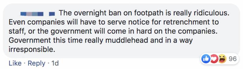 但是,也有网友觉得,政府这次应该给大家一点适应的时间,而不是突然之间下令禁止。就如公司裁员一样,也应该提前通知: