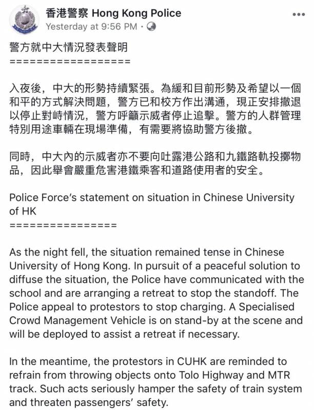 昨晚香港中文大学发生了暴力冲突