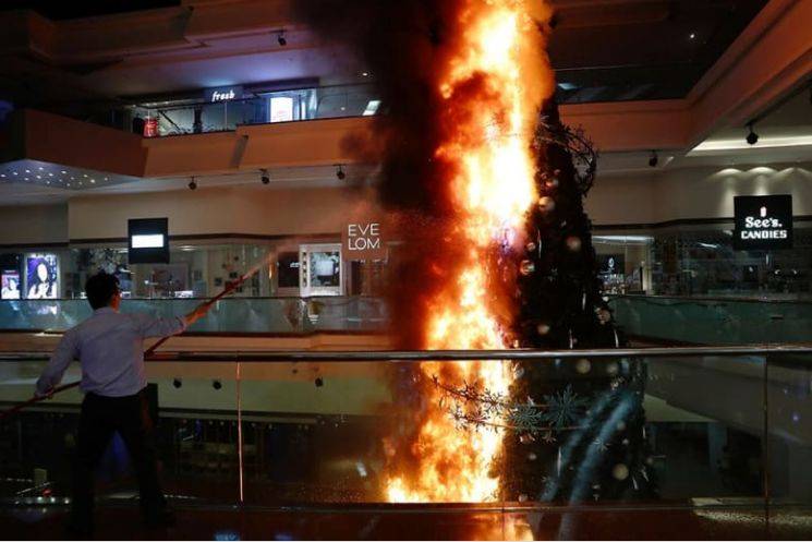 进到商场里面火烧圣诞树