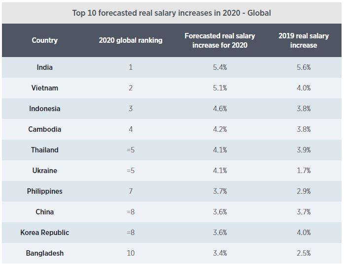 增幅最大的是印度(高于通胀率5.4%),其次是越南、印度尼西亚、柬埔寨和泰国。