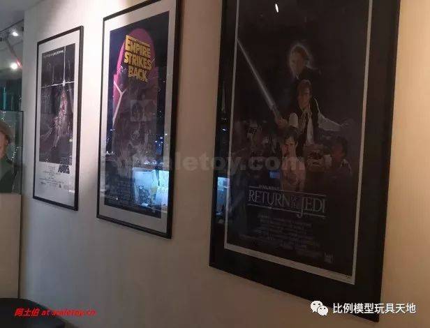 中间有一段连接区域没有展柜,墙上的画也是主题,这里是星球大战中间三部曲的海报