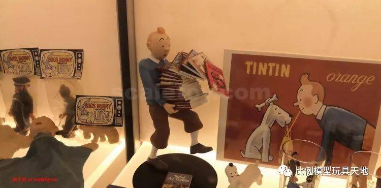 进门处展柜,以猫和老鼠、丁丁历险记、大力水手主题为主