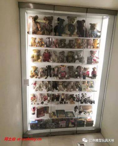 从四楼去三楼的半层展柜,主要是各色毛绒玩具熊
