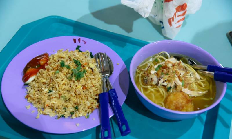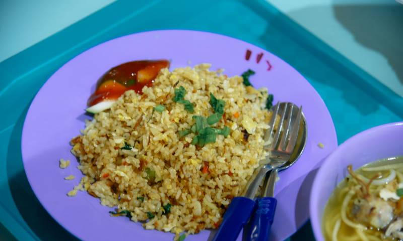 颇富特色的马来炒饭,酸辣可口,而且价位便宜,2-3新币就能吃上。