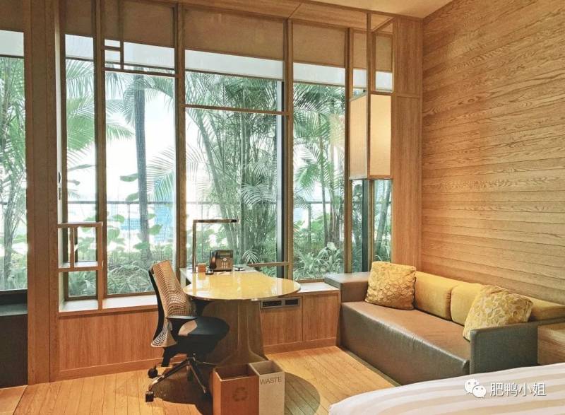 房间30多平米,不大但是够用,毕竟旅行随身携带不了多少东西。房间的结构很合理,再加上超级大的落地窗,加大了空间视觉,所以住在里面完全不会觉得小。这和外面的绿植景观更搭,想像一下如果空间太大,反而会有一种违和感吧。