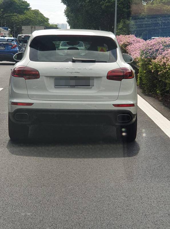 詹晴惠拍下保时捷挡路的照片上传面子书,贴文获许多网民转发。