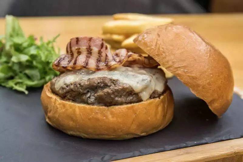 (优质牛肉饼,软煮鸡蛋,脆皮培根,烤牛排配薯条)