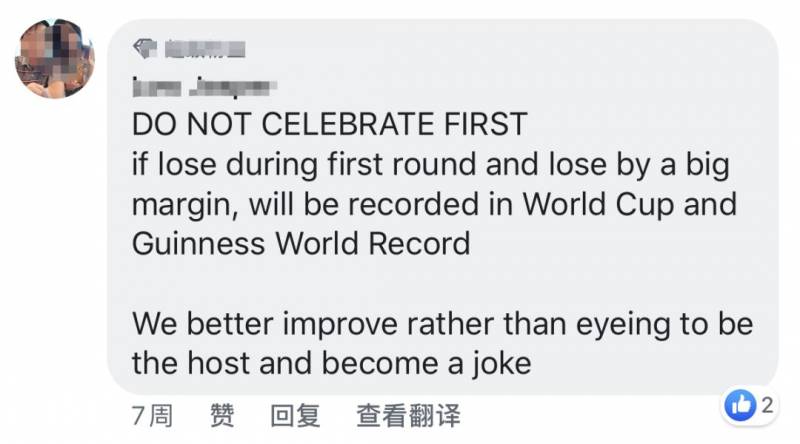 (先别庆祝,如果第一轮就输得很惨,将会被世界杯组委会和吉尼斯世界纪录记载(丢人...),我们最好先提高水平,不要老是想着成为主人,免得让世界看笑话!)