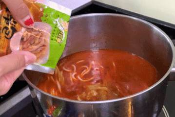 这一款因为有了小龙虾味汤料包,所以煮完后汤底有点偏咸,再加上小龙虾的味道,整体味道比经典款多了些层次感。