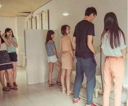 这样可以物尽其用,因为男厕厕格好多时候未必有人,而女厕又不够厕位,这样就可以将男厕厕格分出来给女士用。