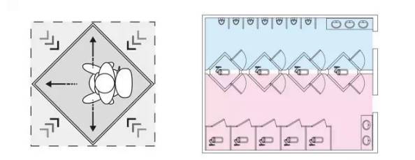 便池周围专门设置隔板,避免如厕时的尴尬;隔板上布置粉色的绘图,这种温馨的设计,主要是降低女生的排斥心理。