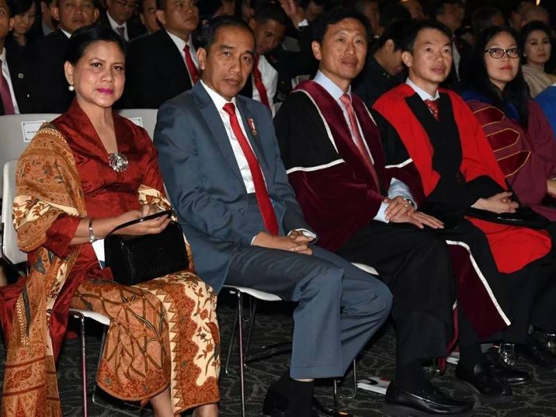新跃社科大学的毕业典礼上一下子来了两位国家元首,实属罕见!他们分别是作为主宾的新加坡总统哈莉玛,和印尼总统佐科及夫人。