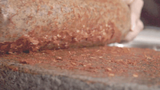 例如,他会花长时间使用最传统的器具,将辣椒磨碎做佐料。