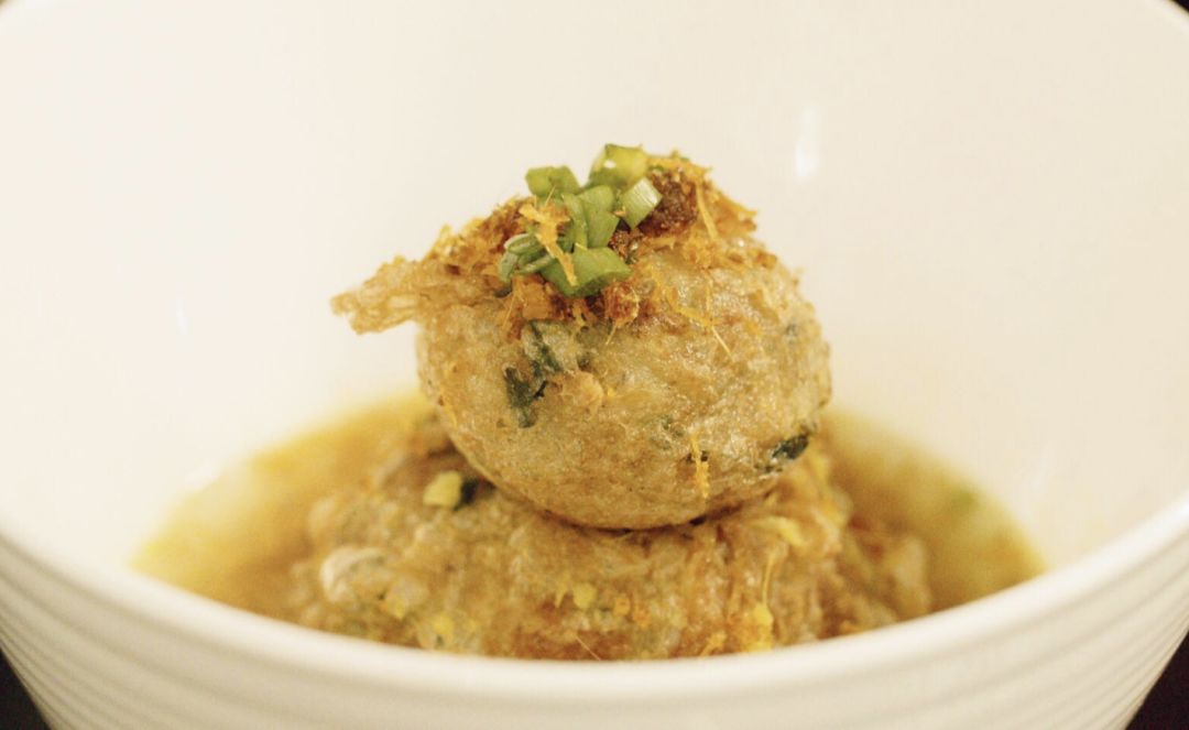 汤点的原型其实是Begedil,也就是马来风味炸土豆。但是,阿努的Begedil用了多达11种材料,并加入了新鲜香甜的蟹肉,汤底是用了熬制多个小时的海鲜汤。