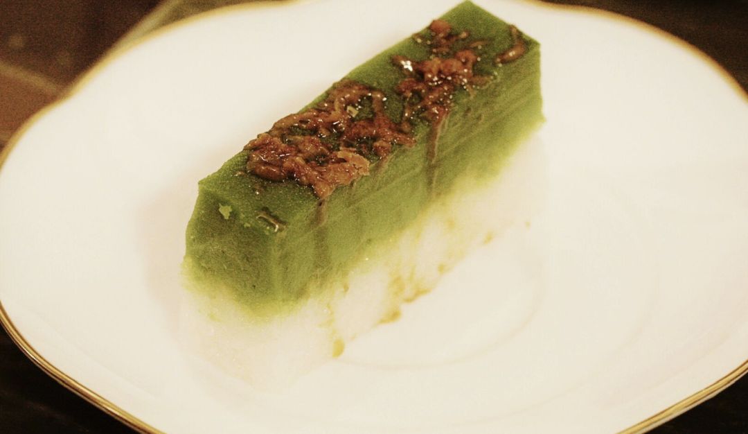 吃完了主食怎么能不来份餐后甜点。上面绿色的部分是班兰和椰浆混合而成的班兰糕,绵密香滑。下层白色的部分是糯米饭。