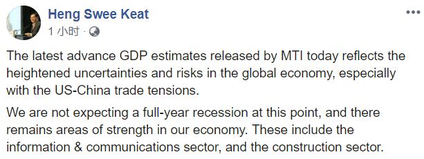 但王瑞杰自信新加坡全年经济不会衰退,新加坡的咨询通讯和建筑业依然强劲。