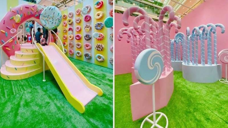 这不是密码,它代表Pretty Sweet 45,这也是Plaza Singapura的狂欢派对主题。在这里,可以看到长长长长的棉花糖串串。