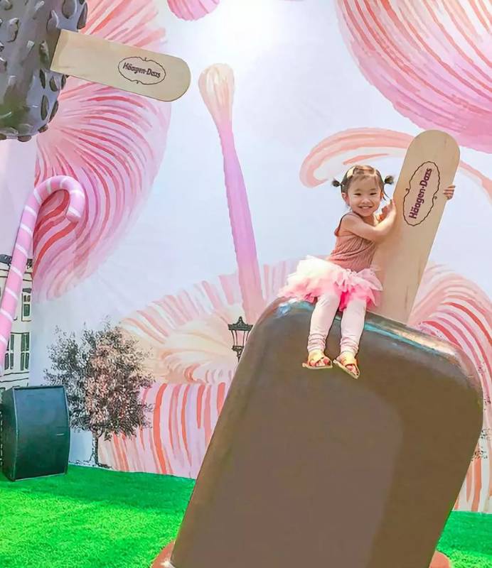 如果你曾经想过躺在巨型的冰淇淋上是什么感觉,那么机会来了。这里有好多不同口味的冰棒、冷饮,就尽情凹造型吧,躺着,趴着,坐着,idea大比拼。