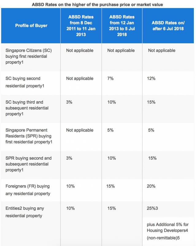 新加坡购买私人住宅ABSD税率