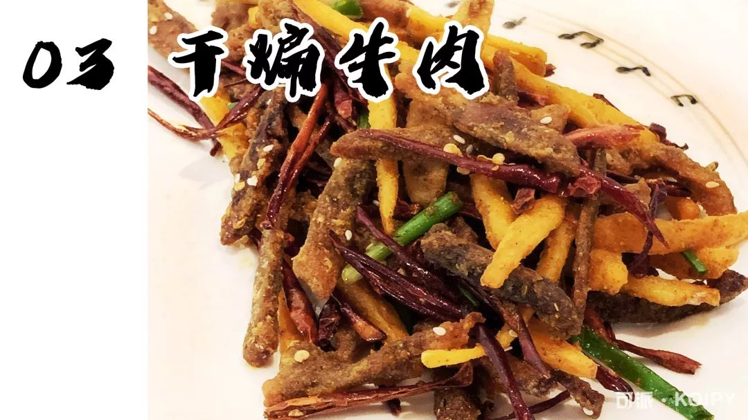 干煸牛肉选取了上等牛腱,富有嚼劲。