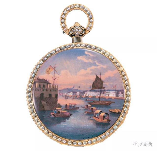 兔子再给大家欣赏几件作品。比如这块日内瓦怀表(S-112),以微缩珐琅彩绘工艺描绘了广州港的忙碌场景,它制作于 1830年左右,专为中国市场打造。