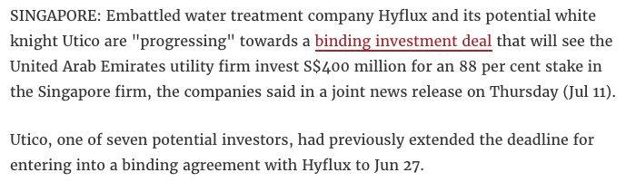 新加坡水处理公司凯发Hyflux即将与合作方签署最终协议,得到4亿新币投资款!