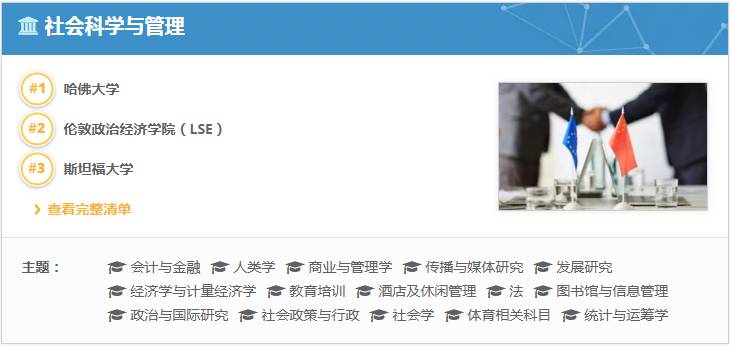 专业包括:会计与金融、人类学、商业与管理学、传播与媒体研究、发展研究、经济学与计量经济学、教育培训、酒店及休闲管理、法、图书馆与信息管理、政治与国际研究、社会政策与行政、社会学、体育相关科目、统计与运筹学。