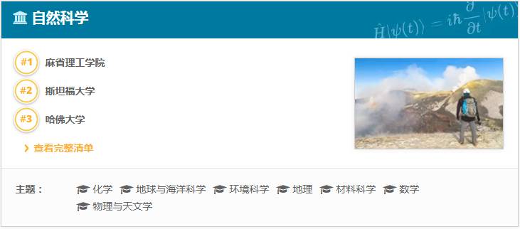 专业包括:化学、地球与海洋科学、环境科学、地理、材料科学、数学、物理与天文学