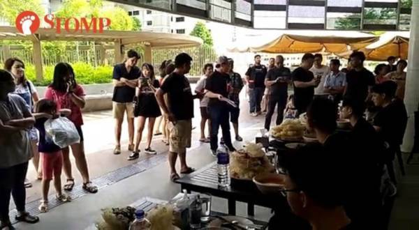 读者杰森告知“STOMP”,日前(10日)下午2时,前往新加坡兀兰街182组座屋吃午餐时,发现一群人在咖啡店外,围着数张大桌子,好奇之下趋前了解,发现咖啡店进行“大胃王”比赛。