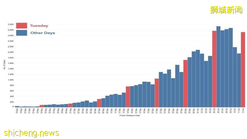 根据新加坡卫生部文告,10月12日,本地新增2976起2019冠状病毒确诊病例,单日新增病例在连续两天下降后又出现回弹。