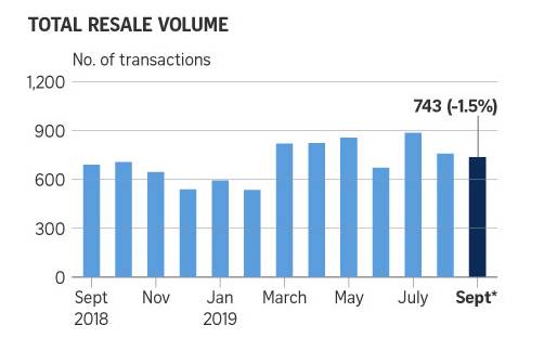 9月份有743个公寓单位转售,较8月份的754个单位下降了1.5%。这是连续第二个月的下降,而今年8月正是农历7月(8月1日至29日)期间,交易下降了13.6%。