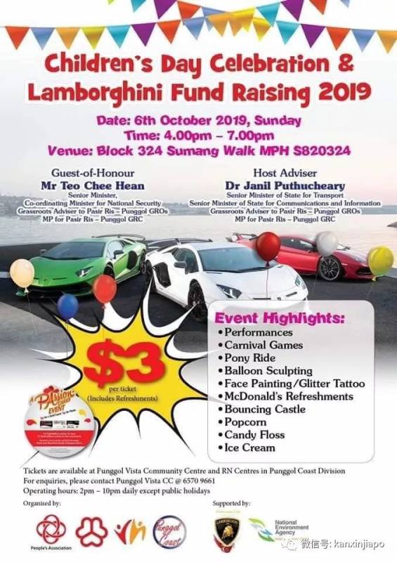 最后还是Punggol Raydew RN的官方脸书揭晓了答案。原来,这竟是一场新加坡兰博基尼跑车俱乐部携手人民协会举办的欢度儿童节筹款慈善活动!