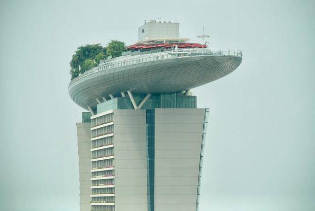 站在鱼尾狮旁,可见各式各种的建筑,其中有李嘉诚的4指高楼群、榴梿屋、船形塔楼、荷花雕塑、金融楼群等等。