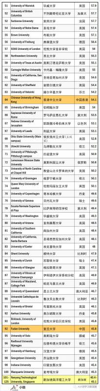 没有亚洲大学进入前20名,但中国有5所大学进入百强榜:北京大学23,清华大学46,复旦大学92,香港大学31和香港中文大学64。