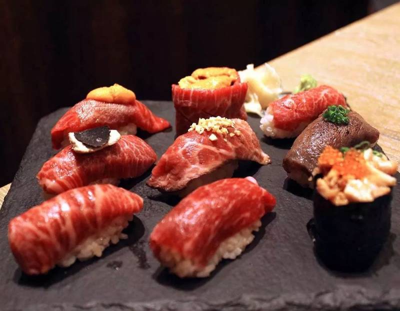 将寿司端到你面前用火枪将牛肉烤至五分熟