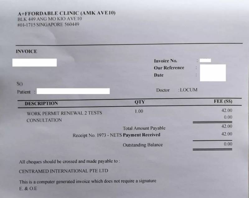 抽血、开单、结账,20分钟全搞定。当然,正如诊所的名称A+ ffordable那样,体检费是真的巨实惠,一口价,只要42新币。我不知道岛内是不是还有更便宜的,但这应该是我见过最便宜的。