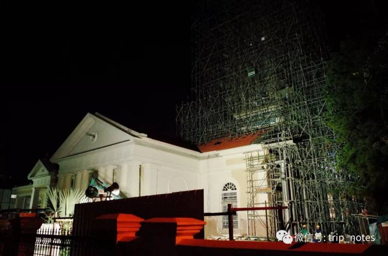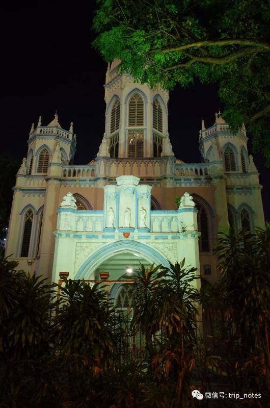 继续前行,会遇到Church of Saints Peter & Paul,我路过这里时,教堂正在翻新修复,但整个教堂墙面通体完全白色,圣洁而华丽的感觉连夜色也无法掩盖。