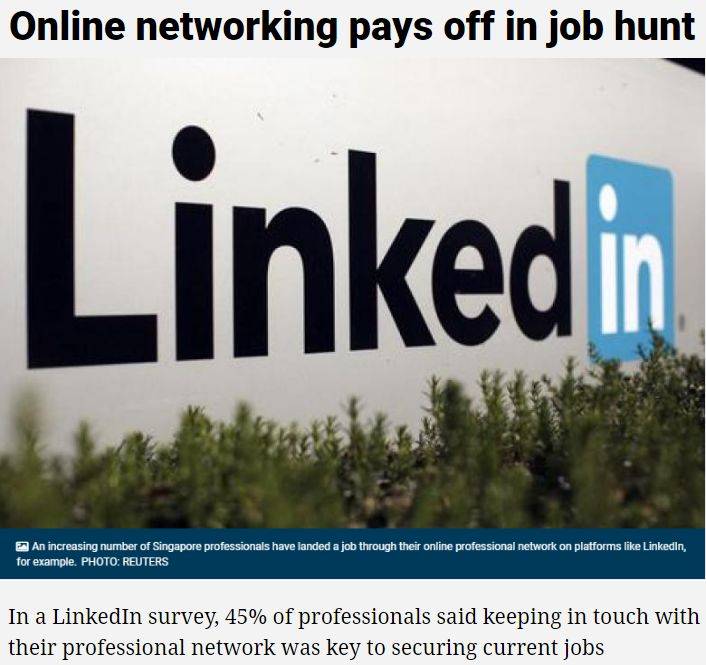 来自17个国家/地区的15,000多名专业人员接受了专业Networking网站Linkedln的调查,其中包括来自新加坡的1,000名来自技术,金融服务,制造业和专业服务等行业的受访者。调查数据表示,在2017年就有45%的新加坡专业人士表示,与他们的专业Network保持联系,对确保他们目前的工作至关重要。与全球平均水平(37%)相比,这一数字更高。
