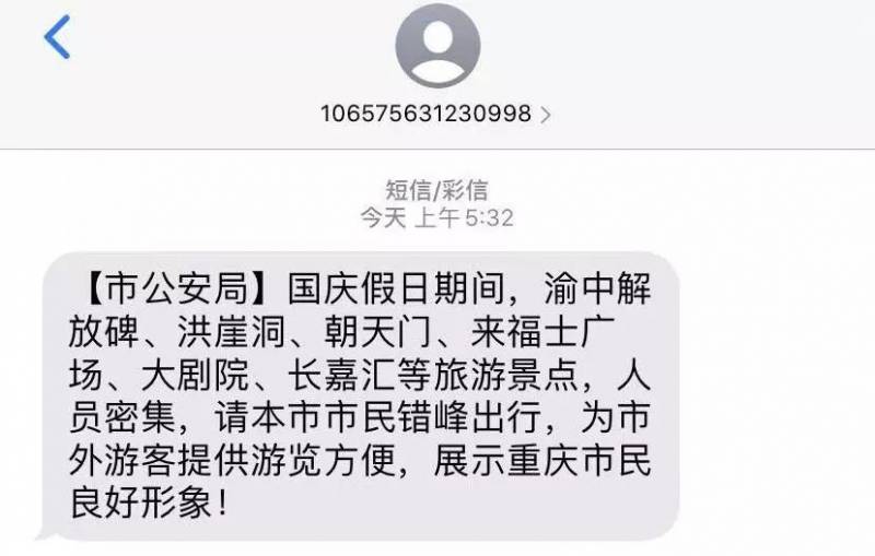 不少重庆市民甚至在国庆期间收到这样一条简讯: