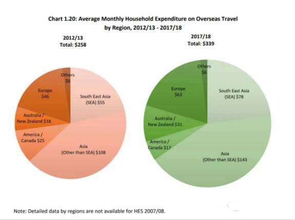 相比之下,中等收入家庭的旅游预算是每月总开销预算的0.7%,前往的目的地一般上是邻近的东盟国家。
