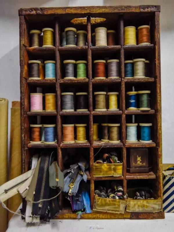 洋服店的作坊是德昌洋服店的心脏所在。每天早上8点不到,作坊就在缝纫机轮子飞转的声音当中开始了新的一天。清脆的裁剪声、裁缝师傅的催促声、熨斗熨平西装的嘶嘶声,响作一团,一直要到晚上9点才安静下来。店里很少有休息日,除了偶尔星期天放假之外,就只好等农历新年的几天假期了。