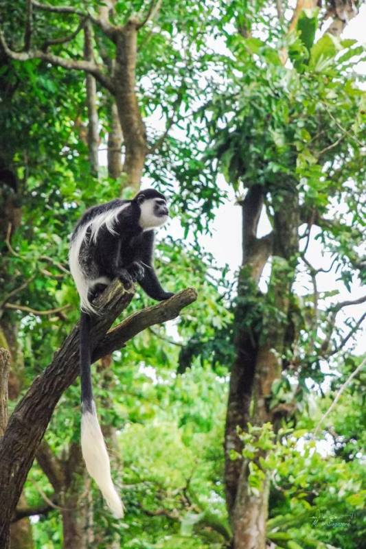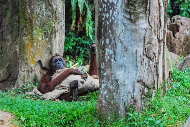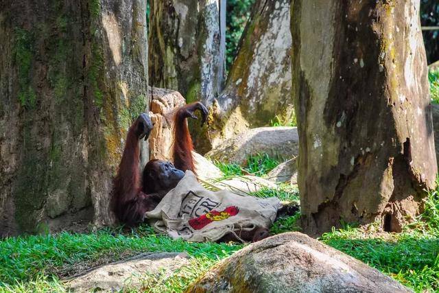 观察灵长类是一件非常有趣的事情,在一片绿意盎然中搜索灵活的身影,观察它们的行为和生活方式与人类究竟有多相似。印象最深的是一只狒狒,不知从哪里找出一只布袋,仔仔细细地抚弄平整然后盖在身上当作被子,那灵巧程度和动作神态简直让人怀疑是园区工作人员带了猿类面具模仿的。