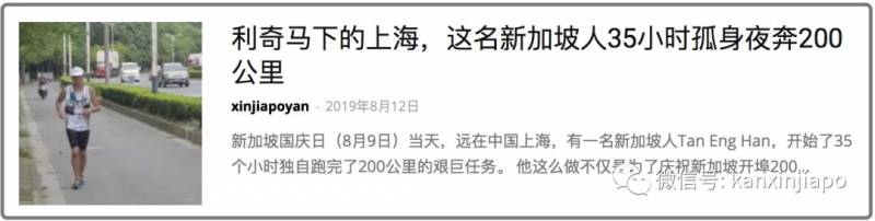 前一段时间,有另外一名新加坡人远在上海,为了慈善花了35个小时,独自跑完了200公里,让人佩服。