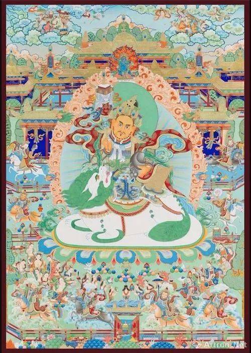 唐卡,是藏民族传统绘画艺术中的一种独特表现形式,以艳丽的色彩、独特的颜料配方、简洁清晰的人物造型,以及浓厚的宗教色彩和与青藏高原自然风光融为一体的风格而备受各界人们的喜爱。