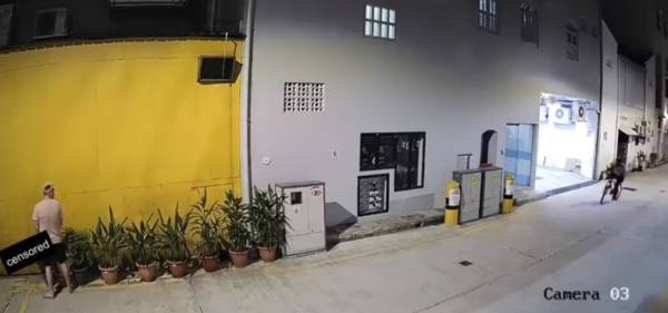 有脚车经过时,男子还望了对方一下。图:Facebook/All Singapore Stuff