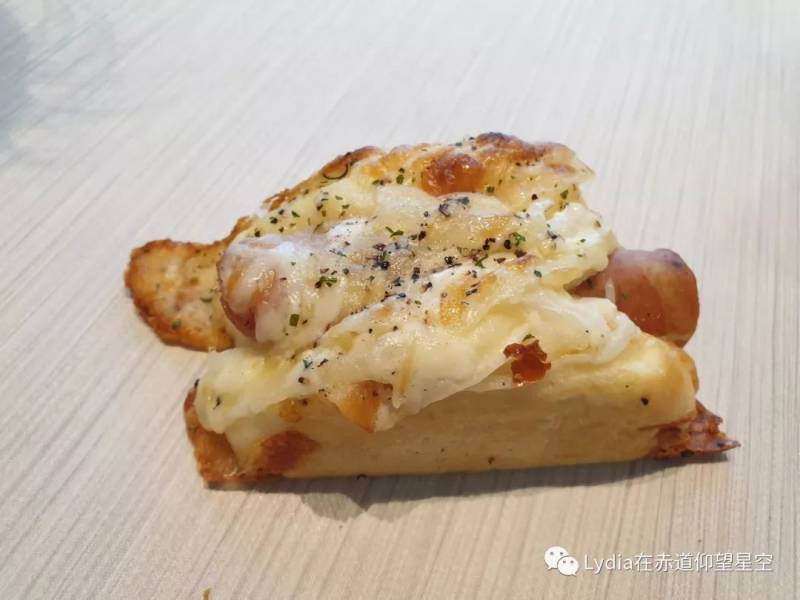 原来我女儿想要再买一个葱花面包,但是我觉得还是尝尝没吃过的口味吧,于是买了一个“葱上云霄Spring into life”$5.2,里面放的不是青葱而是洋葱,还有火腿和Cheddar Cheese以及Mozzarella Cheese。