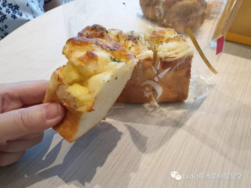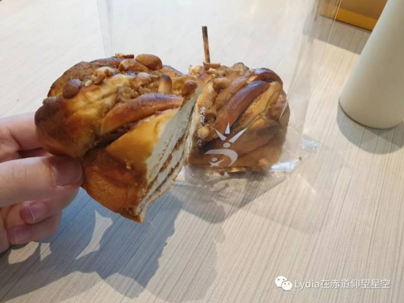 葱花,一个看着不起眼的面包,但是咬下去第一口就感觉好感动——超好吃!面团里有加葱油,所以很香。想起来周星驰的电影里最能展现厨艺的其实是最简单的菜式——比如一盘有爱的蛋炒饭。这个葱花面包就是把最平凡的口味做得最不简单的代表。我女儿吃完说要再买一个!2块钱一个(虽然真的很小很小),但是买不了吃亏买不了上当,推荐喜欢咸口的朋友都去买一个来尝尝