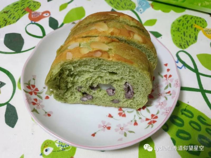 还买了一个,Motcha Roll with Mochi 宇治抹茶麻糬,里面有日式抹茶粉、台湾红豆粒、手工麻糬、杏仁片、蛋、奶油、橄榄油。麻糬糯糯的,很Q弹。面包本身就是面包公爵一贯的扎实有弹性的口感。