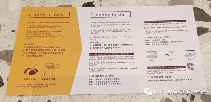 收银台的服务生会问你要不要切,帮你包好装袋,再附上如何存储、以及再加热面包的方法卡片。