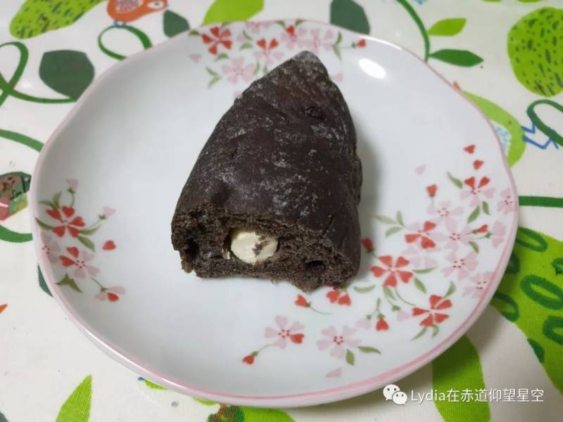 我那天买的Chocolate Cheese 修格拉乳酪, 切开以后,可以看见中间的乳酪,里面有巧克力、奶油乳酪、可可粉、奶油、黑糖。吃的到爆浆的巧克力颗粒,不会很甜,但是巧克力味道还是挺浓的。但是不爱吃Cheese的人还是不要买这款了,不确定你们吃不吃的惯里面的cheese味道。